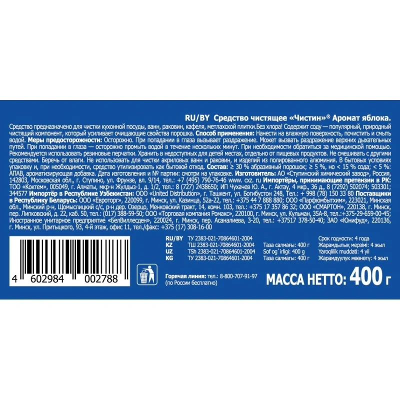 Универсальное чистящее средство Чистин Яблоко порошок 400 г.