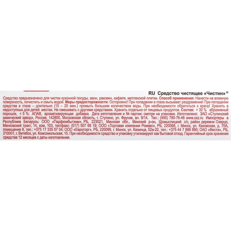 | Бренд | Чистин |
