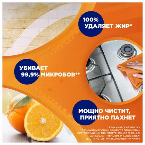 Средство для кухни МИСТЕР МУСКУЛ 'Энергия цитруса' идеально подходит для очистки столешниц, бытовой техники, раковин, плит, духовок, стен, рабочих поверхностей, шкафов и полов. Перед очисткой электроприборов отключать их от сети.