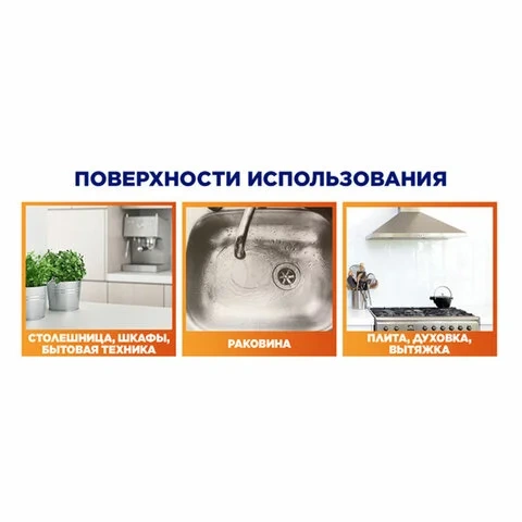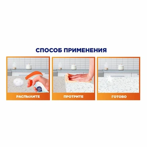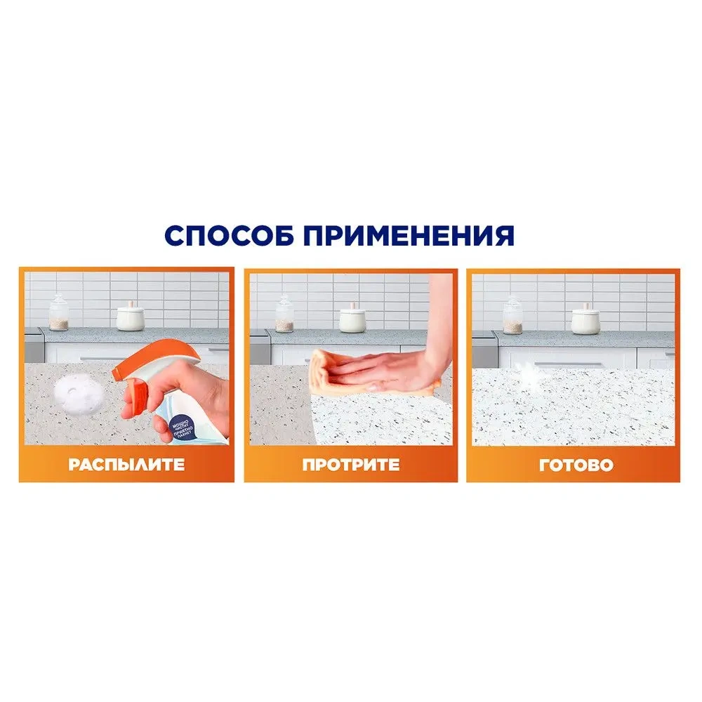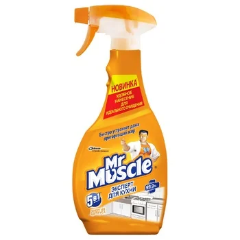 Назначение. Mr Muscle чистящее средство для кухни предназначено для очистки столешниц, бытовой техники, раковин, плит, духовок, стен, рабочих поверхностей, шкафов. Специальная формула легко справляется с трудновыводимым жиром и въевшейся грязью. Убивает 99,9% микробов. Имеет приятный, не резкий аромат. Перед очисткой электроприборов отключать их от сети.