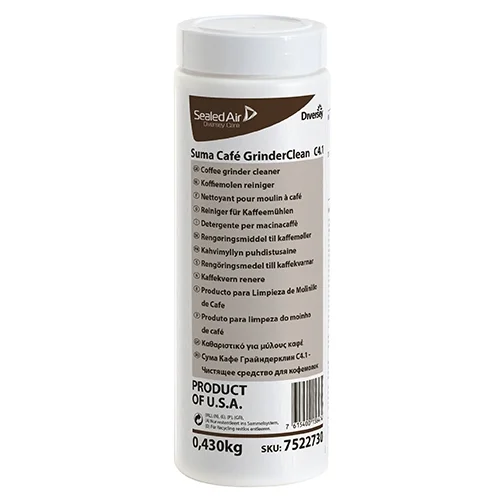 Средство Suma Cafe GrinderClean является первым в мире продуктом, разработанным специально для чистки кофемолок. Изготовлено на основе полностью натуральных компонентов. Средство производится в форме кофейных зерен. Предназначено для удаления кофейного осадка и посторонних кофейных запахов в кофемолках (в том числе встроенных). Благодаря запатентованной формуле быстро и эффективно удаляется кофейный осадок с поверхностей, контактирующих с кофе при помоле, в том числе из шероховатостей, кожухов и пр.