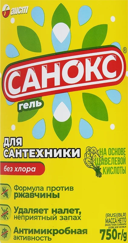 Назначение: предназначено для чистки сантехнических изделий (ванн, раковин, унитазов), различных фаянсовых изделий и кафеля от ржавчины, известковых отложений, органических и жировых загрязнений, а также для удаления неприятных запахов.