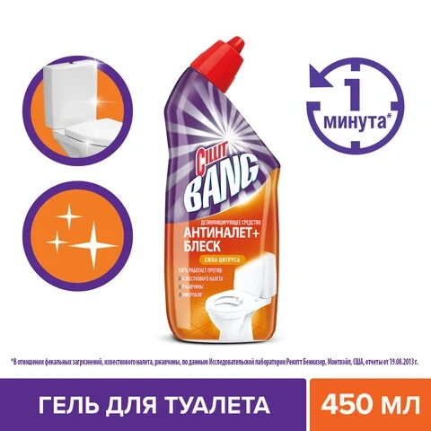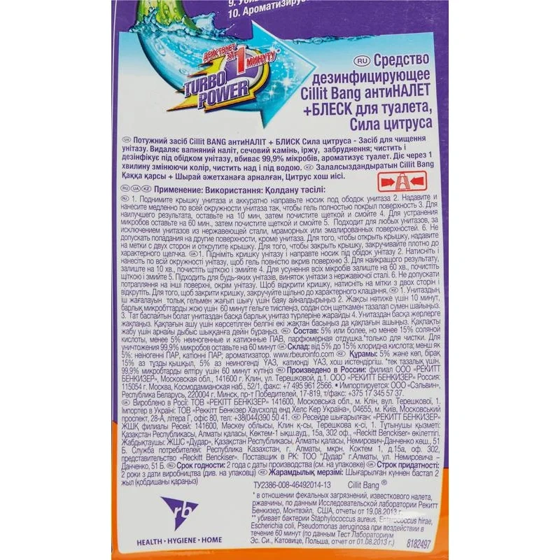 Чистящее средство для сантехники Cillit Bang Turbo Power 450мл, антиналет+блеск, сила цитруса, гель