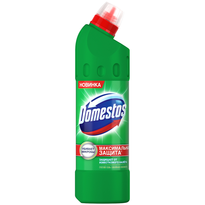Универсальное чистящее средство Domestos 'Двойная сила. Хвойная свежесть' подходит для уборки раковин и ванн, кафеля, пола, унитаза, сливов и водостоков на кухне и в ванной. Чистит до блеска, дезинфицирует и отбеливает. Domestos не только очищает поверхности, но и помогает бороться со всеми известными микробами - в том числе, вызывающими опасные заболевания, обеспечивая свежий аромат.Густой, многофункциональный, экономичный и невероятно эффективный. Состав: менее 5%: гипохлорит натрия, анионные ПАВ, неионогенные ПАВ, мыло, отдушка.