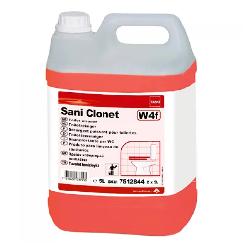 TASKI Clonet является полностью готовым к употреблению сильно действующиммоющим средством на основе кислоты для периодического удаления мочевого камня,кальциевых, известковых и прочих отложений с унитазов и писсуаров.
