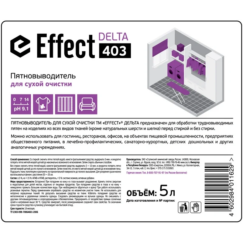 Чистящее средство Effect Delta 403 5л, для удаления сложных пятен, жидкость