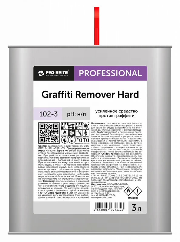 Усиленное чистящее средство Pro-Brite Graffiti Remover Hard 3л, 102-3