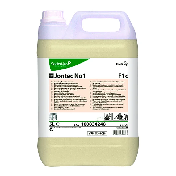 Diversey Jontec No 1 - высокоэффективное средство для удаления эмульсионного покрытия и защитных пленок с устойчивых к воздействию щелочи твердых полов.