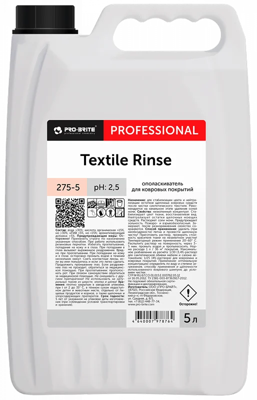 Чистящее средство для ковров и мебельной обивки Pro-Brite Textile Rinse 5л, 275-5