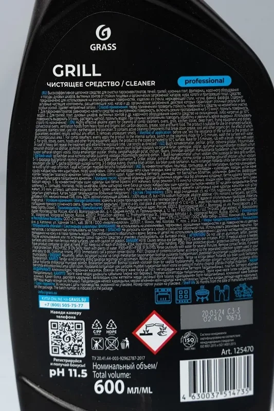 Моющее средство для грилей, духовок, пароконвектоматов Grass Grill Professional объемом 600 мл предназначено для эффективной очистки различных кухонных поверхностей и оборудования. Средство готово к применению и обладает высокой щелочной активностью, что обеспечивает быстрое удаление стойких пищевых и органических загрязнений, таких как нагар, жир, копоть и пригоревшая пища.