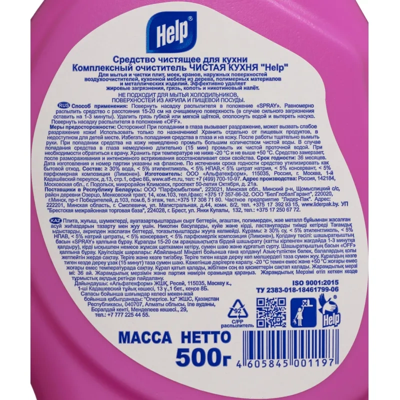 Чистящее средство для кухни Help Чистая кухня 0.5 кг от жира и нагара спрей для стеклокерамики