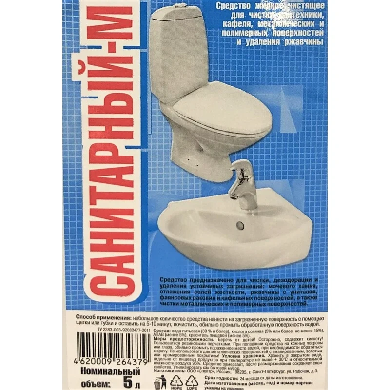 Чистящее средство для сантехники Санитарный-М 5л, с соляной кислотой