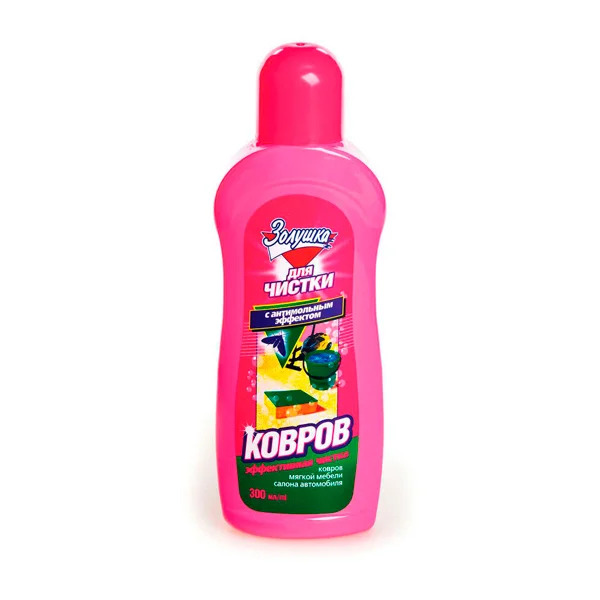 Средство для чистки ковров 'Золушка' с антимольным эффектом, 300мл эффективно удаляет поверхностные загрязнения и пыль, не повреждая изделие. Особенности: не разрушает волокна; не оставляет разводов; сохраняет цветовую гамму; действует быстро и эффективно; имеет приятный аромат.