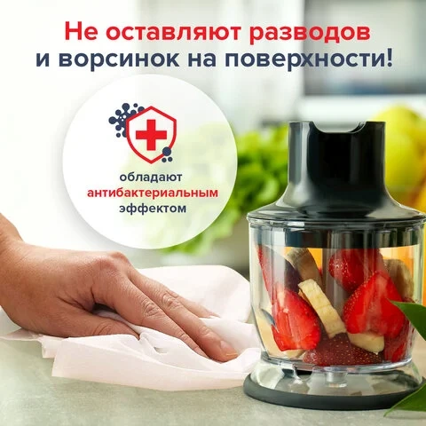 Благодаря специальной формуле пропитки не оставляют разводов, ворсинок, помогают избавиться от пыли и различных загрязнений. Обладают антибактериальным эффектом. Размер салфетки в развернутом виде - 170х190 мм. 80 штук в упаковке.