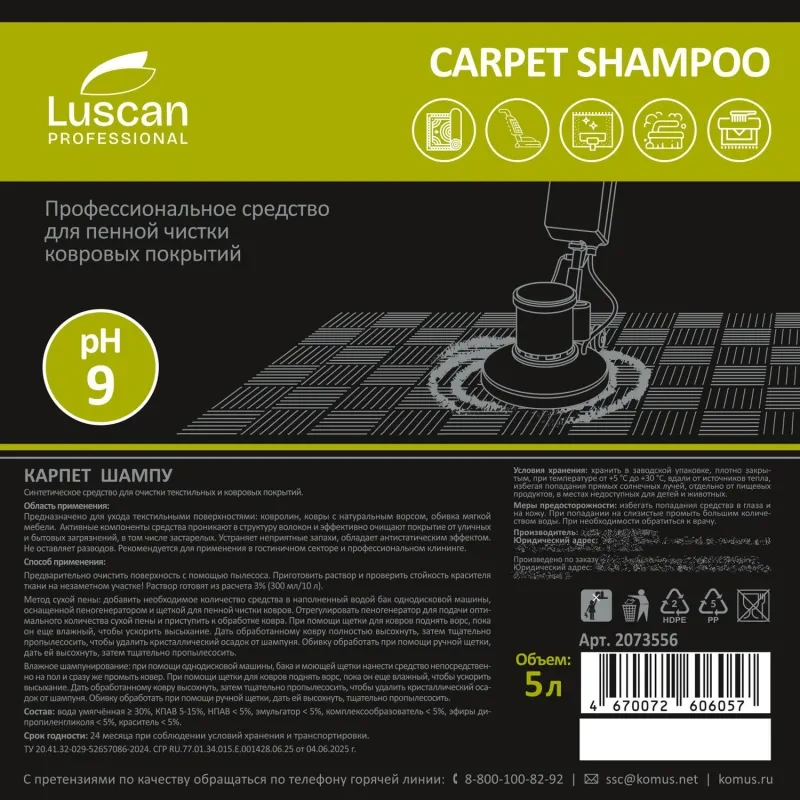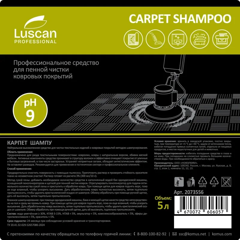 Чистящее средство для ковров Luscan Professional Сarpet Shampoo, 5л