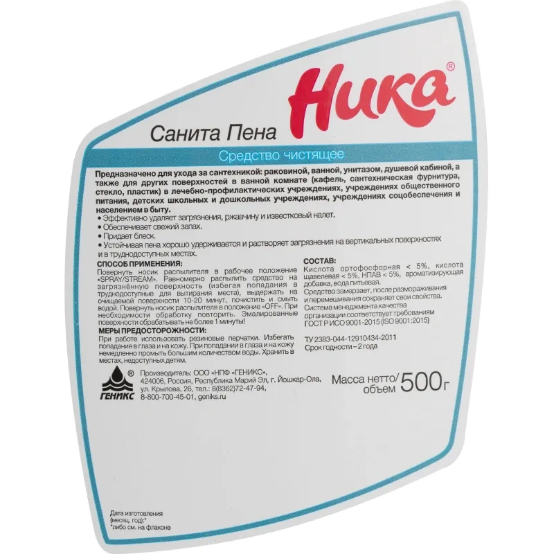 Средство чистящее Ника 'Санита пена', с курком, 500г