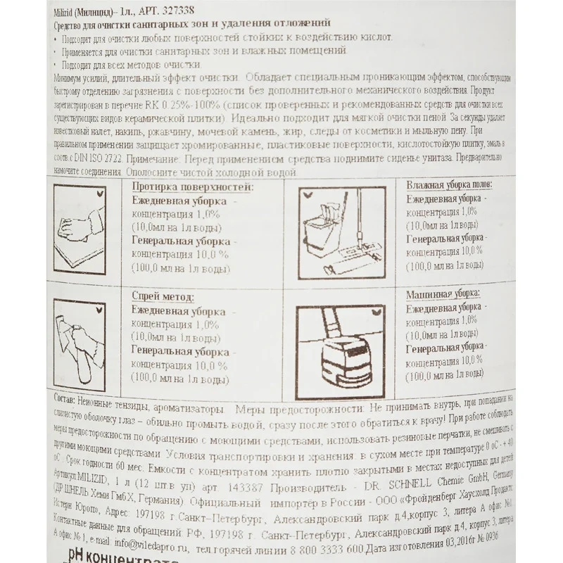 Чистящее средство для сантехники Dr.Schnell Milizid 1л, для санитарных зон, 30004, 143387
