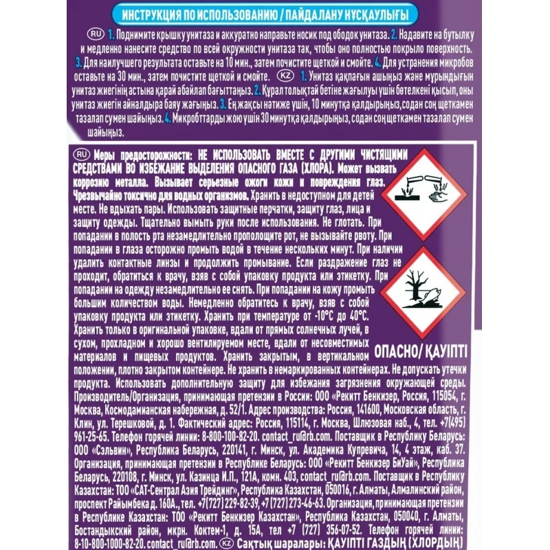 Чистящее средство для сантехники Туалетный Утенок супер сила 900мл, видимый эффект, гель