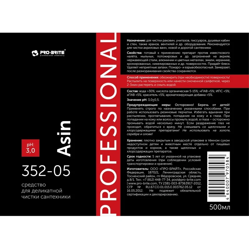 Деликатное чистящее средство Pro-Brite Asin 500мл, 352-05