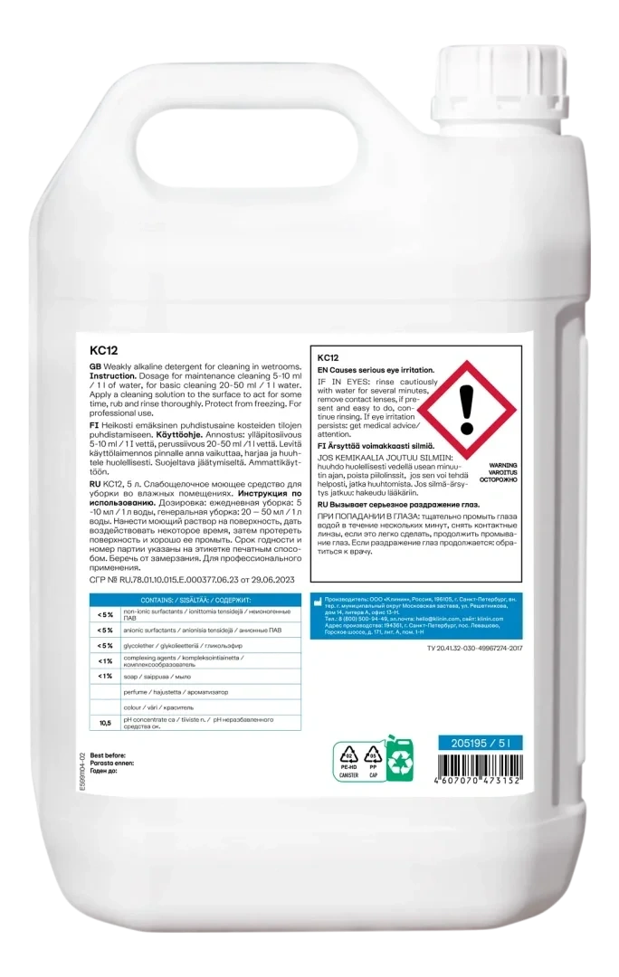Чистящее средство для сантехники Klinin КС12 5л, слабощелочное