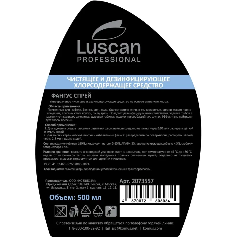 Чистящее средство для сантехники Luscan Professional Fungus Sprаy 500мл, с хлором