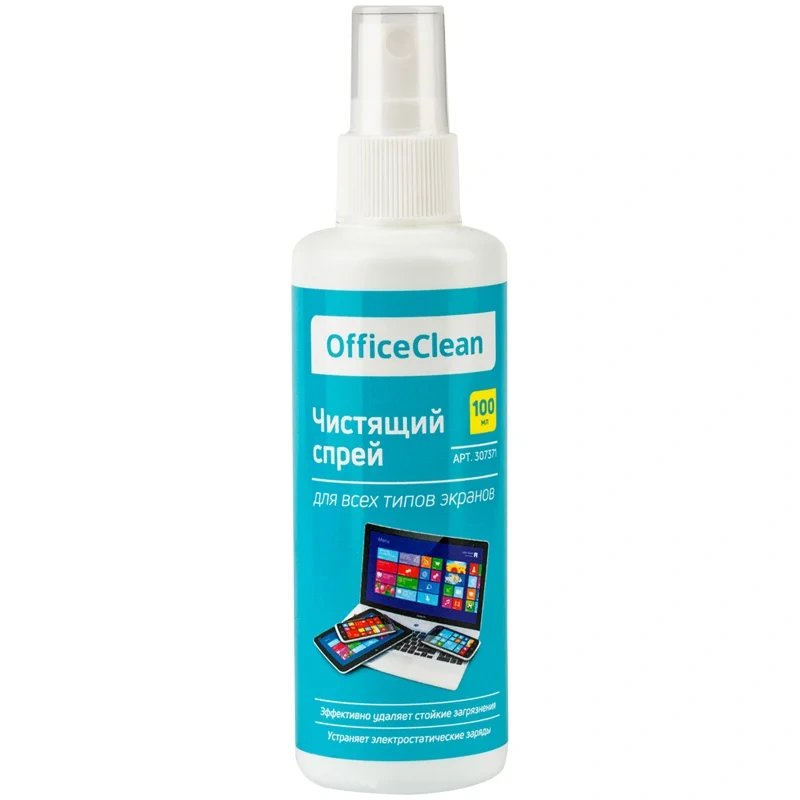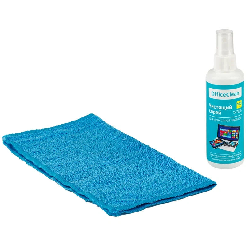 Чистящий спрей OfficeClean для всех типов экранов и мониторов, в комплекте салфетка из микрофибры