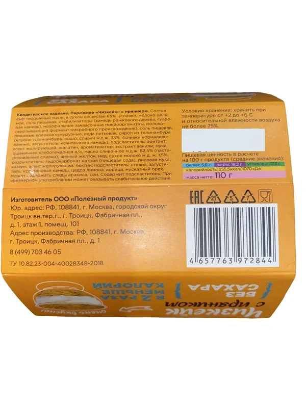 Чизкейк 0 Калорий с пряником без сахара, 110г