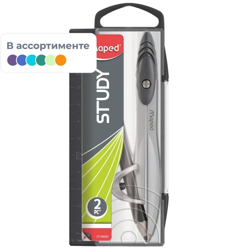 Циркуль Maped Study 120мм, металл., карандаш в компл., ассорти, 119410