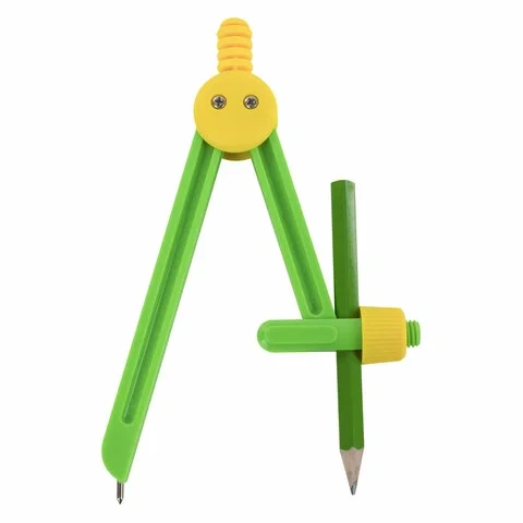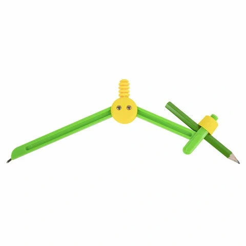 Инструмент длиной 110 мм имеет несгибаемые штанги и карандаш в комплекте. Изготовлен из пластика. Имеет удобную конструкцию и привлекательный дизайн. Минимальный диаметр вычерчиваемой окружности - 0,5 см. Цвет - ассорти. Поставляется в ПВХ-чехле.