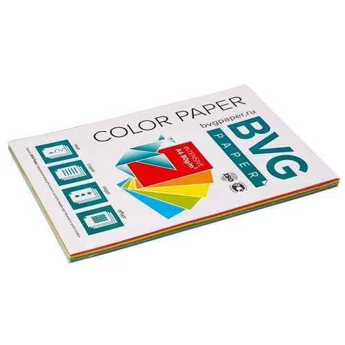Цветная бумага для принтера Bvg интенсив 5 цветов, А4, 100 листов, 80г/м2