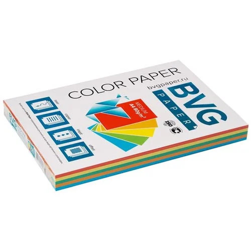 Цветная бумага для принтера Bvg медиум 5 цветов, А4, 250 листов, 80г/м2
