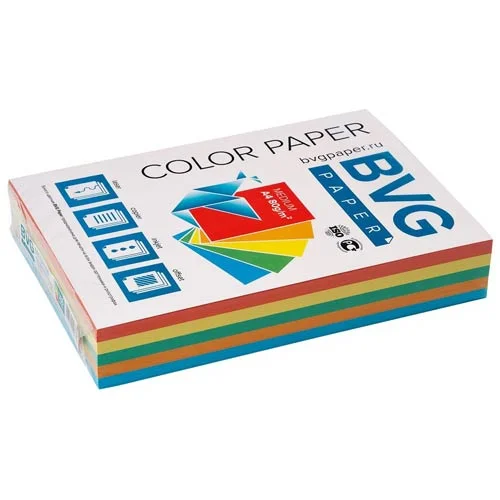 Цветная бумага для принтера Bvg медиум 5 цветов, А4, 500 листов, 80г/м2