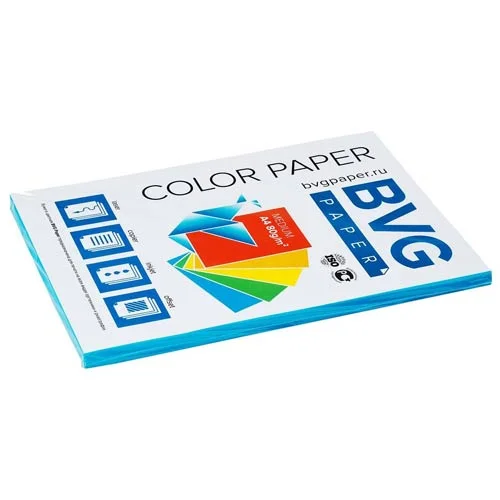 Цветная бумага для принтера Bvg медиум голубая, А4, 100 листов, 80г/м2