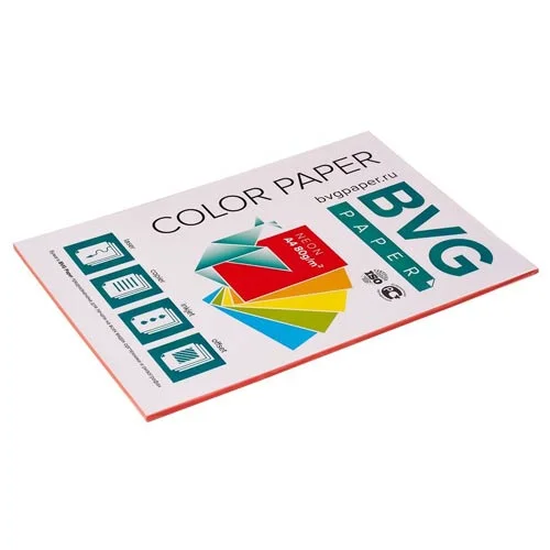 Цветная бумага для принтера Bvg Neon красная, А4, 50 листов, 80г/м2