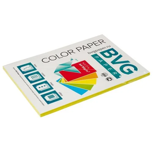 Цветная бумага для принтера Bvg Neon желтая, А4, 100 листов, 80г/м2