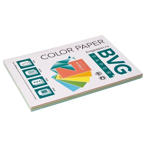 Цветная бумага для принтера Bvg Pastel 5 цветов, А4, 100 листов, 80г/м2