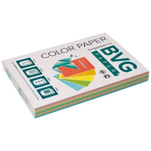 Цветная бумага для принтера Bvg Pastel 5 цветов, А4, 250 листов, 80г/м2