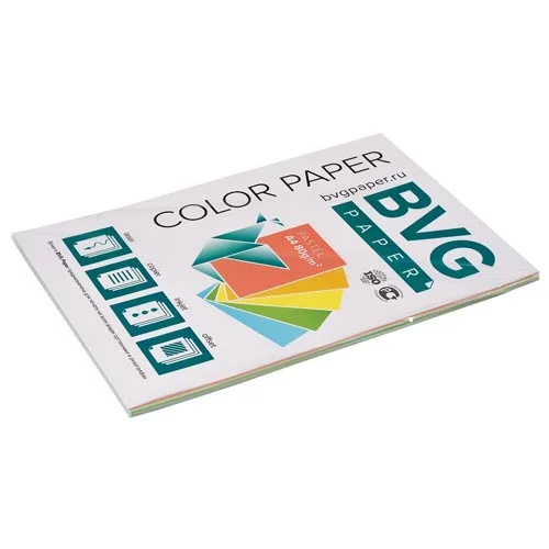 Цветная бумага для принтера Bvg Pastel 5 цветов, А4, 50 листов, 80г/м2
