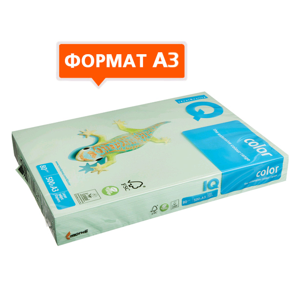 Цветная бумага для принтера Iq Color pale зеленая, А3, 500 листов, 80г/м2, MG28