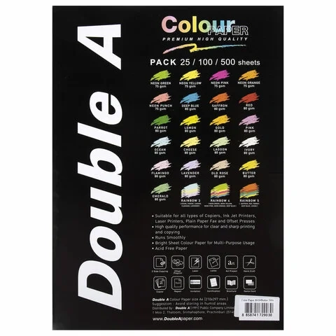 Цветная бумага для принтера Double A неон желтая, А4, 100 листов, 75 г/м2