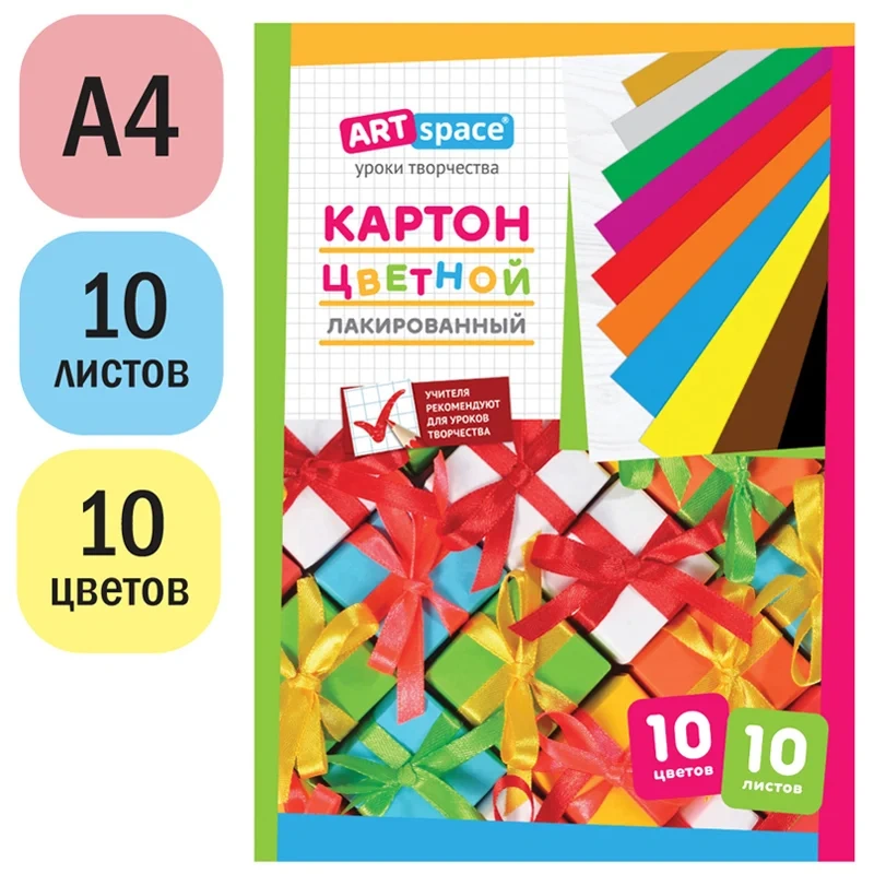 Цветной картон Artspace 10 цветов, А4, 10 листов, лакированный