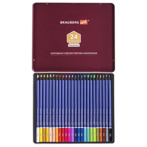 Карандаши художественные цветные акварельные BRAUBERG ART PREMIERE, 24 цвета, грифель 4 мм, металл,