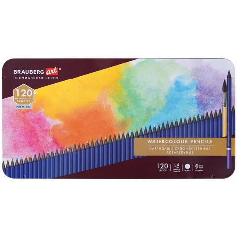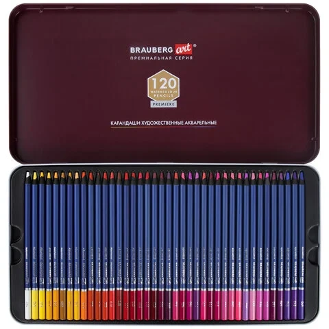 Набор акварельных карандашей Brauberg Art 120 цветов, металлический кейс