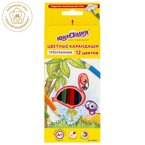 Карандаши цветные супермягкие ЮНЛАНДИЯ 'ЭКЗОТИКА', 12 цветов, трехгранные, с раскраской, 181647