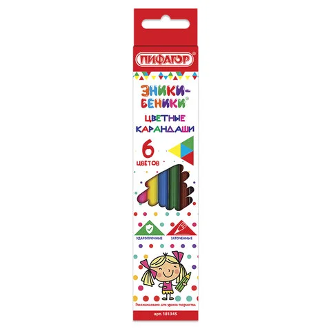 Карандаши цветные ПИФАГОР 'ЭНИКИ-БЕНИКИ', 6 цветов, классические заточенные, 181345