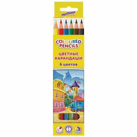 Карандаши цветные ЮНЛАНДИЯ 'ДОМИКИ', 6 цветов, классические, пластиковые, грифель мягкий 3 мм, 18183