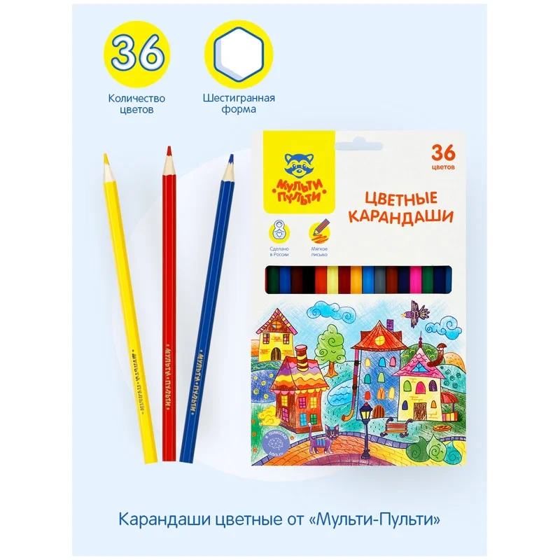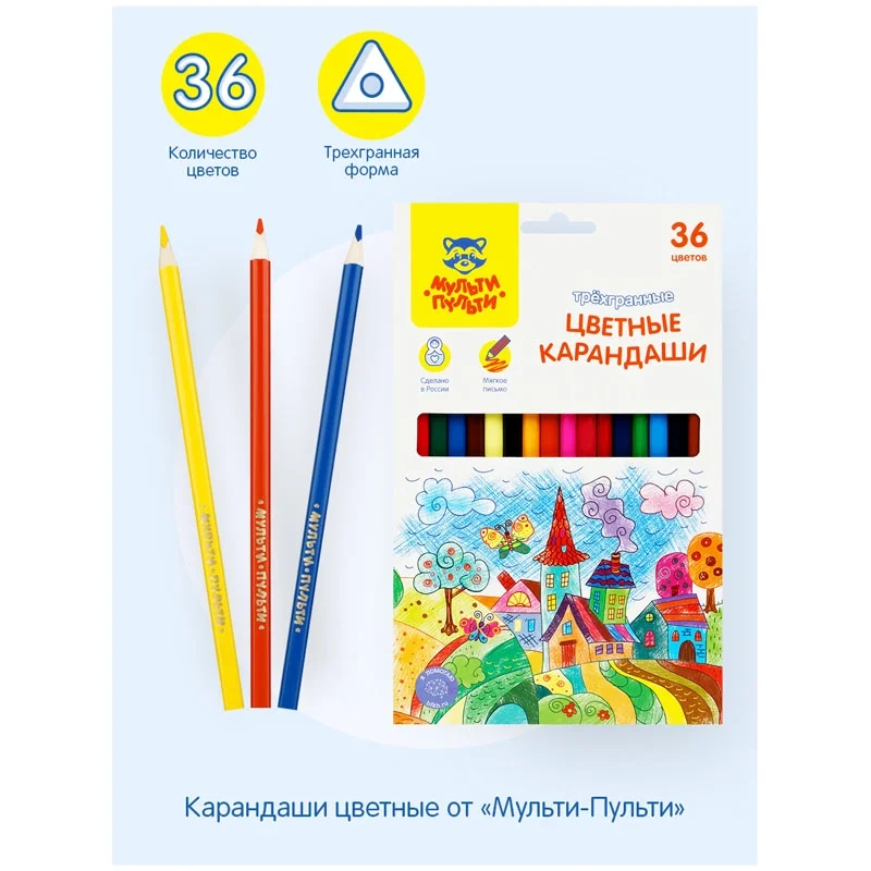 Карандаши цветные Мульти-Пульти 'Невероятные приключения', 36цв., трехгран., заточен., картон, европ