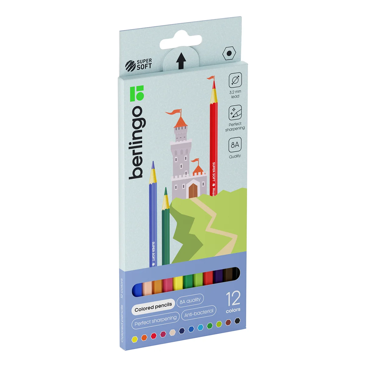 Карандаши цветные Berlingo 'SuperSoft. Замки', 12цв., заточен., картон, европодвес