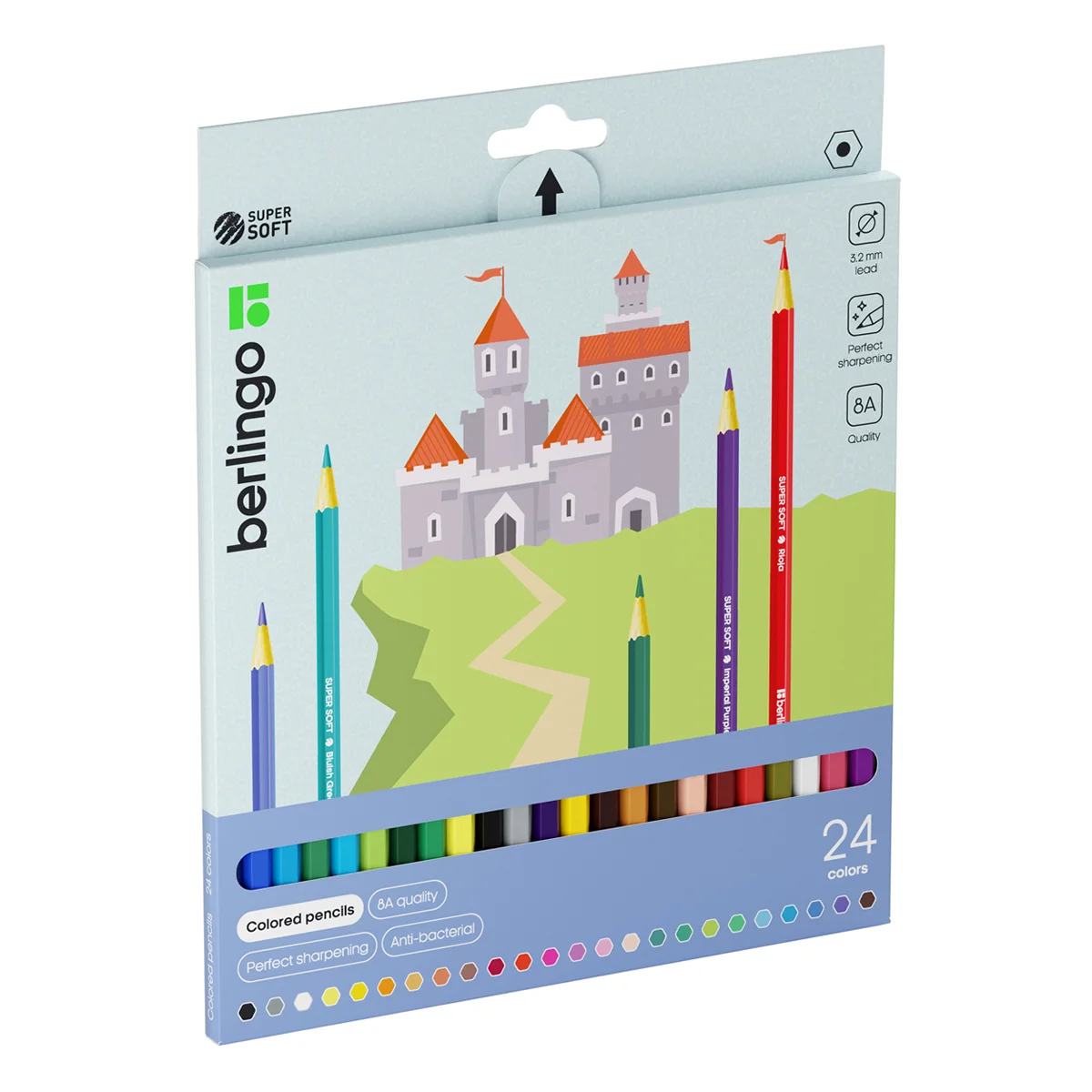 Карандаши цветные Berlingo 'SuperSoft. Замки', 24цв., заточен., картон, европодвес