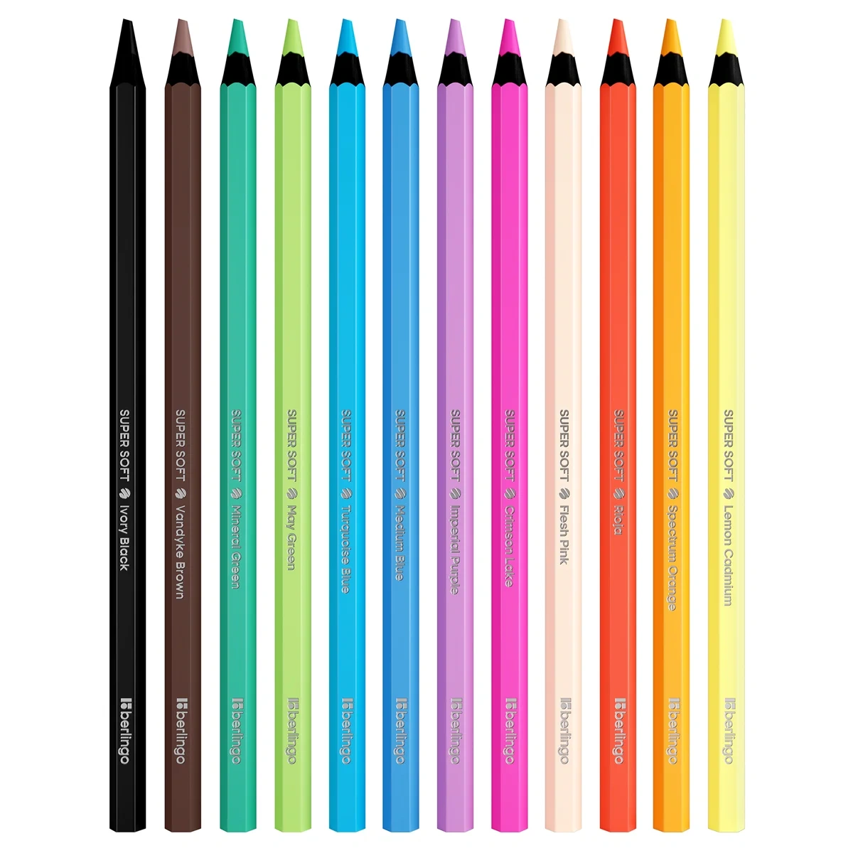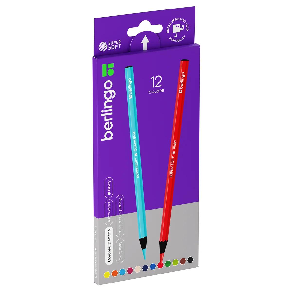 Карандаши цветные Berlingo 'SuperSoft. Blackwood', 12цв., черное дерево, заточен., картон, европодве